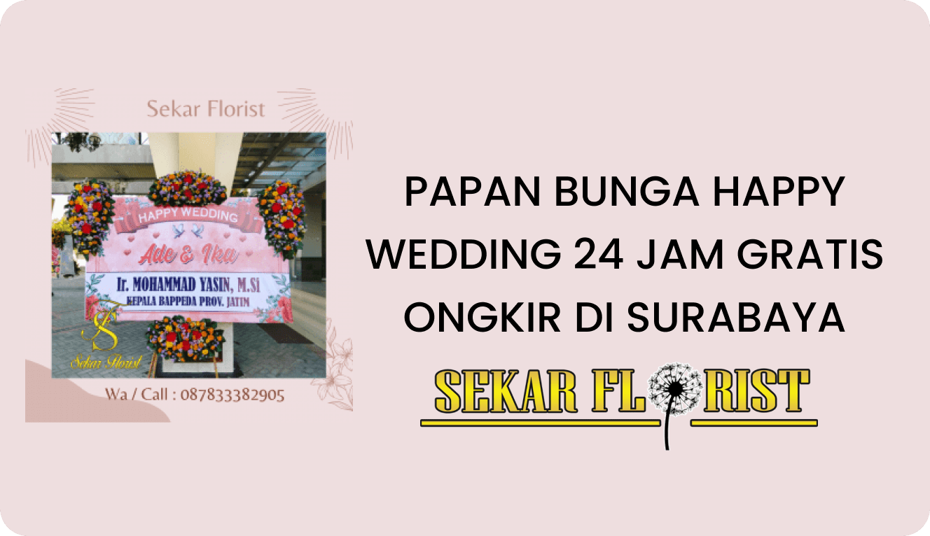 Jual Papan Bunga Happy Wedding 24 Jam Gratis Ongkir Surabaya – Halo semua, toko karangan bunga Sekar Florist menjual papan bunga happy wedding 24 Jam gratis ongkir pengiriman area Surabaya Kota….