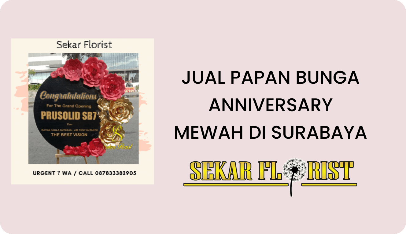 Jual Papan Bunga Anniversary Mewah Surabaya – Halo semua, toko karangan bunga Sekar Florist mnejual papan bunga anniversary desain mewah di Surabaya. Sekar Florist menjual papan bunga anniversary dengan desain yang…