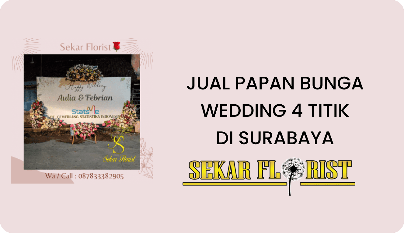 Jual Papan Bunga Wedding 4 Titik di Surabaya – Halo semua, toko karangan bunga Sekar Florist Surabaya menjual papan bunga wedding 4 titik di Surabaya. Apa itu 4 titik? yang dimaksud…