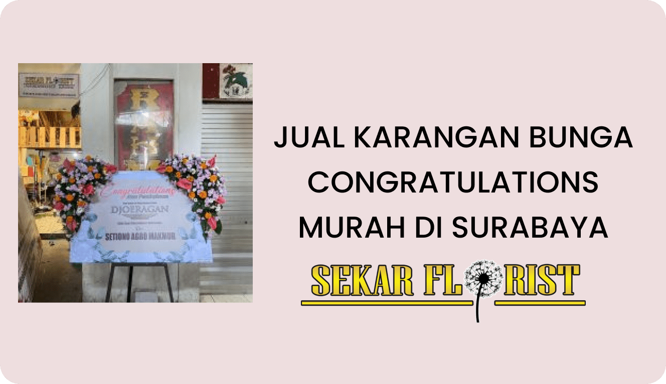 Jual Karangan Bunga Congratulations Murah di Surabaya – Halo semua, toko karangan bunga Sekar Florist menjual karangan bunga congratulations dengan harga yang murah di Surabaya. Buat kalian yang sedang membutuhkan karangan…