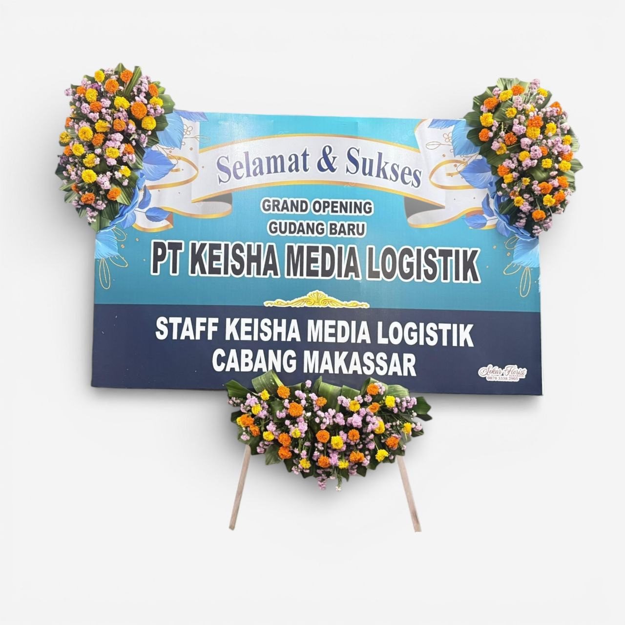 Rayakan pencapaian rekan bisnis atau kerabat Anda dengan Bunga Papan Selamat & Sukses Printing edisi Corporate Blue. Karangan bunga ini dirancang khusus untuk momen-momen perayaan profesional seperti Grand Opening Kantor, Peresmian Gudang Baru, Pembukaan Cabang, atau Anniversary Perusahaan.